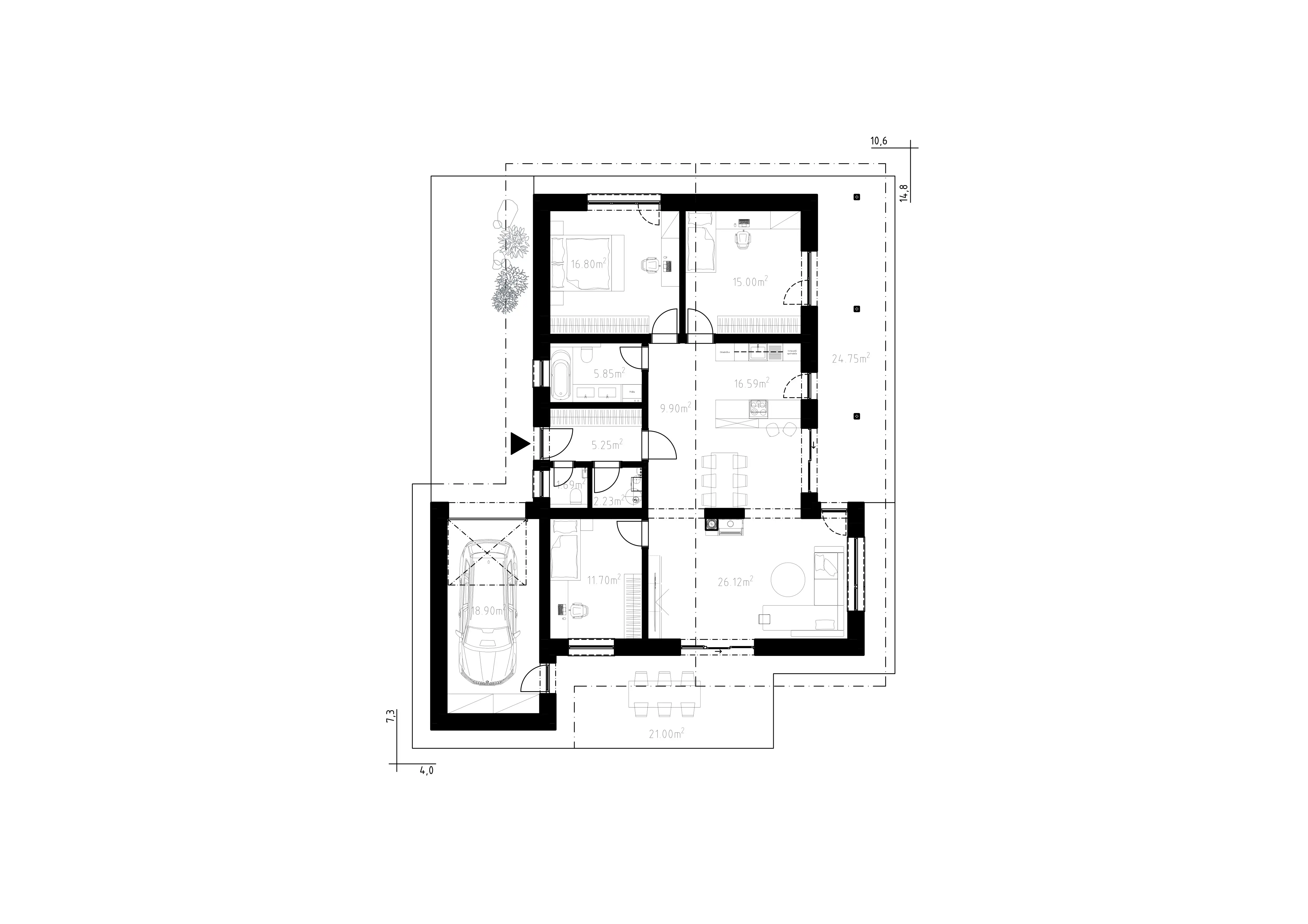 Dostatok súkromia pre všetkých členov rodiny v priestranných izbách rodinného odmu Vodáň. Domček disponuje kúpeľňou s wc. Technická miestnosť a samostatné wc sa nachádzajú pri vchode. Očarí vás naozaj veľká obývačka a čiastočne oddelená kuchynská časť s jedálenským stolom. V dome sú dve detské izby a jedna spálňa s východom do exteriéru. Vodáň určite poteší aj majiteľov áut, nakoľko súčasťou stavby je aj garáž. Nezabúdame ani na terasu, ktorá je dostupná z obýcej izby.