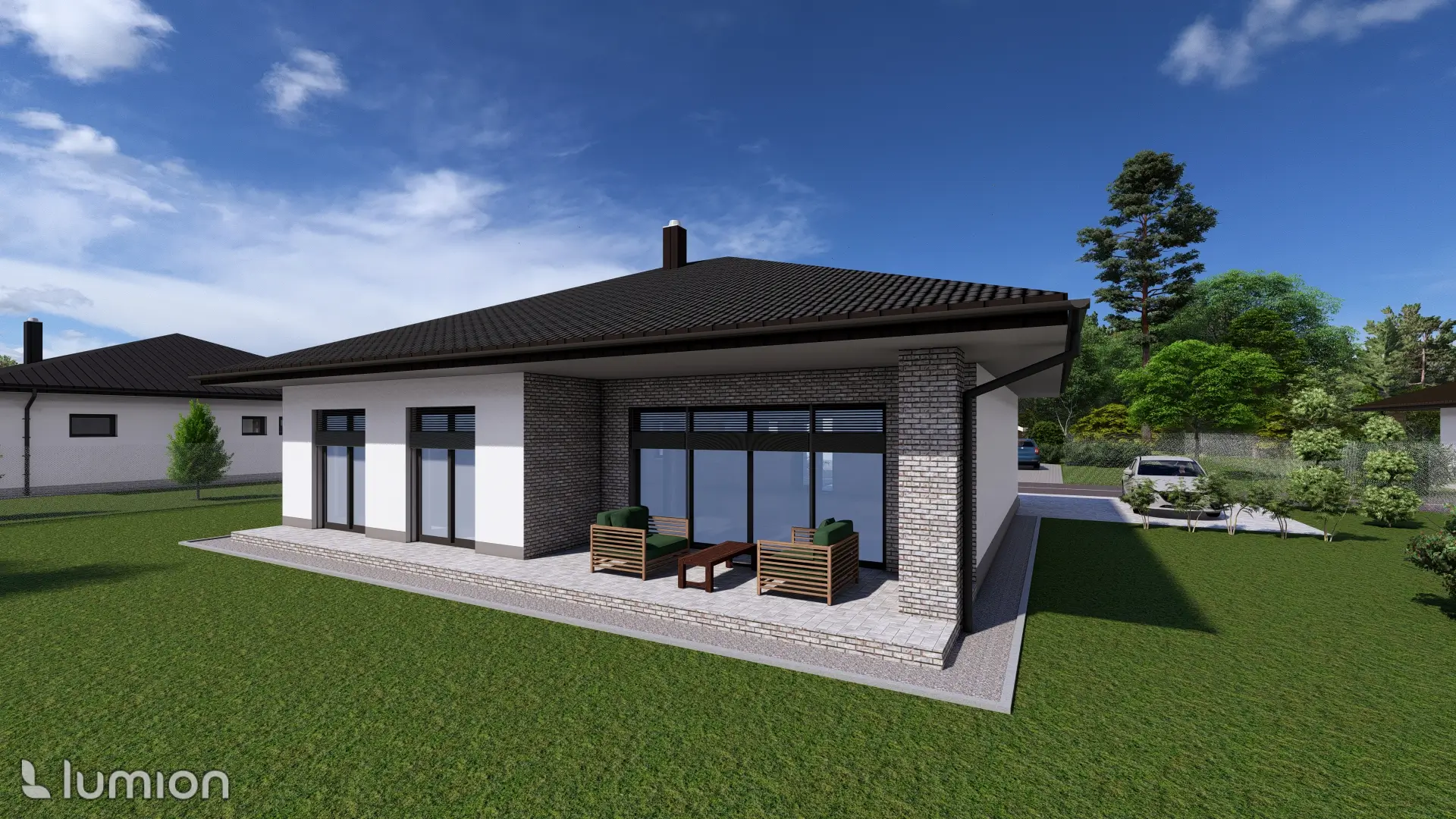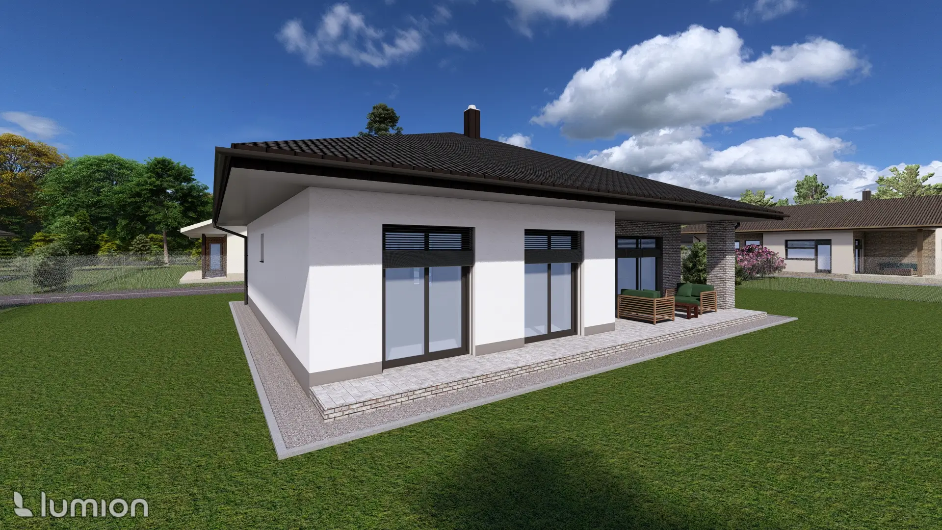 V Žive sa dobre žije. Pretože ponúka dostatočný priestor pre všetkých členov rodiny. Nachádza sa v ňom spálňa s veľkou walk-in skriňou a dve detské izby s východom na terasu. Výhodou sú dve samostatné WC - jedno pri vchode a druhé v blízkosti spálne a izieb. V obývačke sa potešíte obrovskému HS portálu a východom na terasku a priestrannej časti s jedálenským kútom a kuchyňou, ktorá má aj komoru.